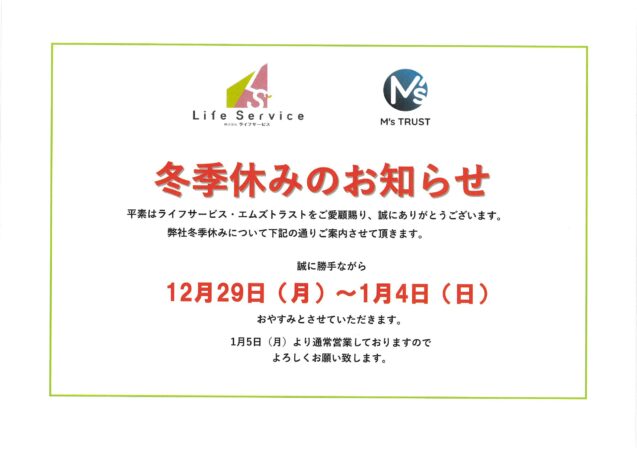 来年もライフサービス、エムズトラストをよろしくお願いいたします。 ライフサービス一同
